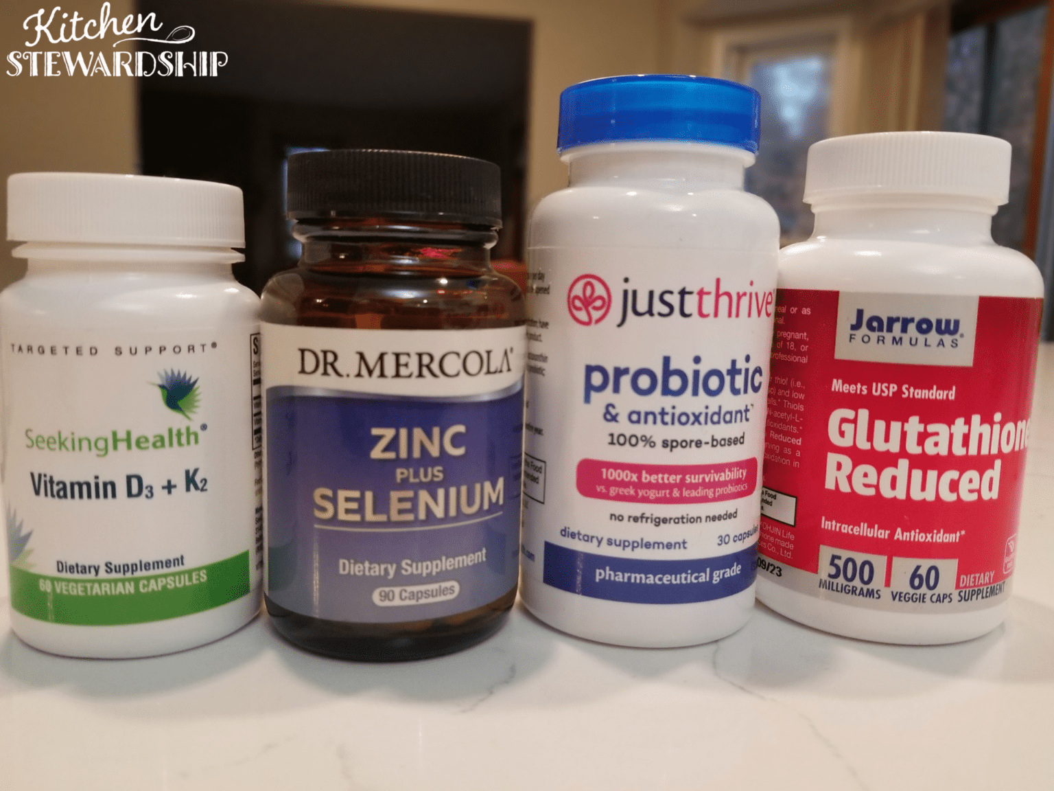 - Just Thrive Probiotic – For many, many years now our family has rotated probiotics and taken them on a daily basis. Just Thrive and Seed are some of our favorites. (Use the code Katie15 for 15% off at JustThrive!) But I think as long as you are taking a good one, having a healthy gut is the basis for your entire immune system. Related: read my reviews of all the probiotics we’ve tried here.