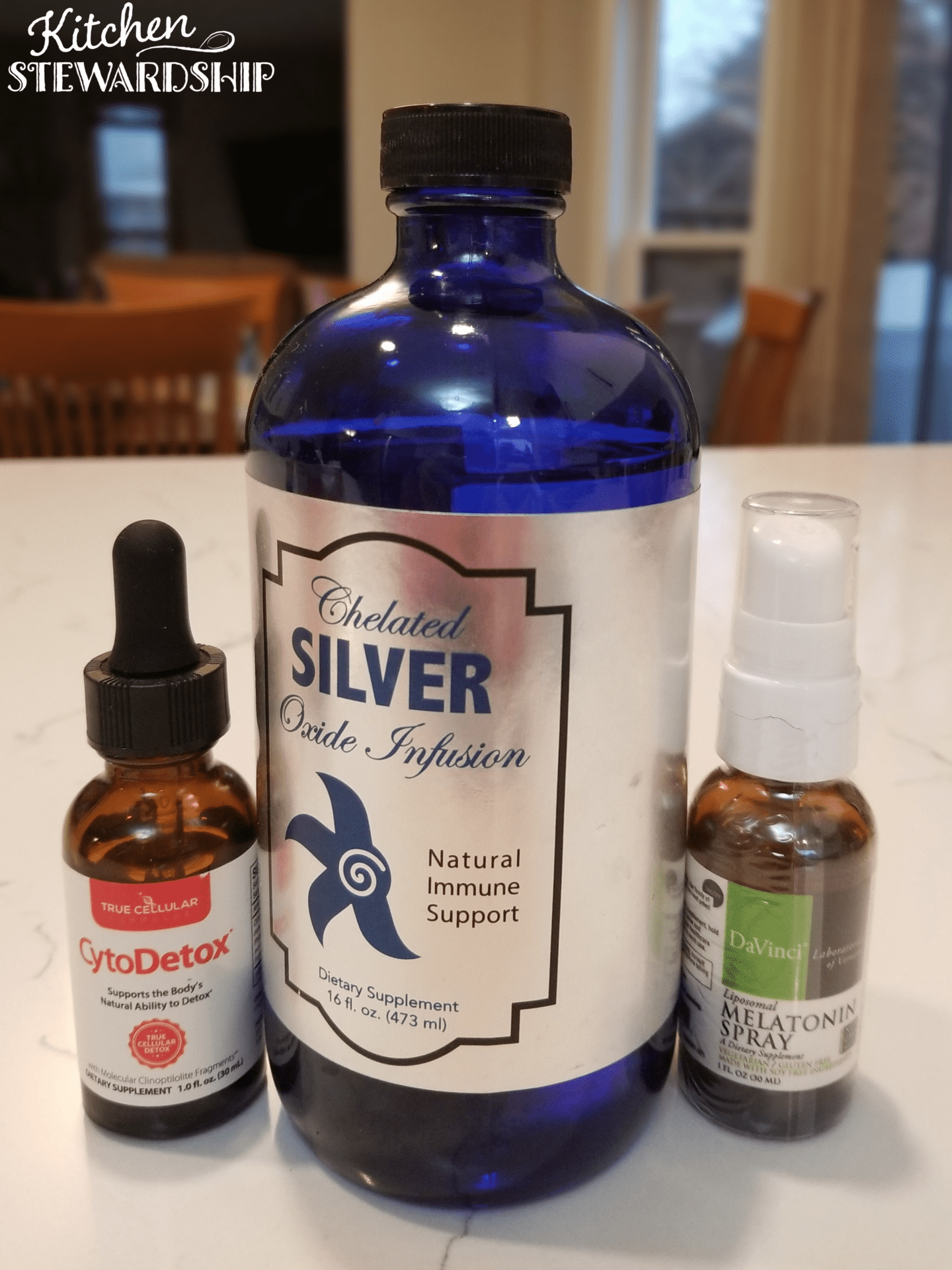 I’ve spent quite a number of hours chatting with the founder of 3rd Rock Essentials. He is a chemist and extremely brilliant, and he stands behind this chelated silver 150%. The spray is great to take a few squirts at a time, any time of day, any day of the year. I also use it to refresh my mask when I’m traveling in airports, and it can stand in as hand sanitizer as well. (Use the code KITCHENSTEW for 20% off!)