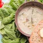 For a dairy free version, make the soup with 100% chicken broth and whisk in a bit of homemade mayo, which will add creaminess and mimic dairy a bit. We’ve also had success using almond milk in place of the dairy milk (I tend to use more chicken broth in the ratio because almond milk is so expensive, not very healthy, and not very creamy).