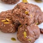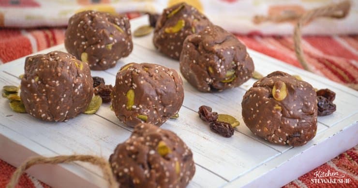 We call these mudballs because they really look like balls of mud! What kid doesn’t love to start her day with mud?! We are a homeschooling, farming family. So we spend a lot of time outside in the dirt and in the garden. These mudballs look like dirt with seeds. But they are delicious. And they spark conversation about our creation.