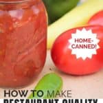 My homemade canned salsa recipe has been a huge hit in our house. I figured out how to make my homemade salsa taste like the restaurant. I hope your family also enjoys my recipe for canned salsa.