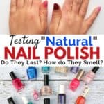 My daughter, our neighbors, and I spent a couple of weeks with wacky looking fingernails to answer all those questions for you. We applied all the non-toxic nail polish brands that I had, around 20 of them, and put one on each fingernail so that we actually had 10 different colors on at a time.
