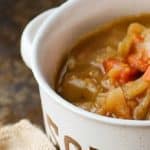I like how this underscores the frugality of doing things yourself and shopping the sales and seasons. Dry beans and homemade chicken stock make a massive difference in price here, and shopping for pumpkin in the fall and cabbage in March really cut down the total cost as well. Under $3 to feed 10 people? Seriously. That’s awesome.