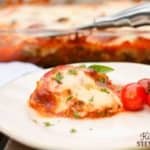*Note: If you want to make sure the zucchini gets soft, you can optionally parboil it for a few minutes before layering in the pan. I skip that step because I hate making more dishes! Also, the dish will be pretty watery at the end if you use raw zukes, so either parboil, roast on a cookie sheet, or slice/shred and salt (Use the code kitchenstewardship for 15% off of your first purchase) the zucchini and drain well before layering.
