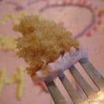 King Arthur offers a coconut frosting as well, but I used my mom’s famous almond-flavored frosting. We don’t do birthday cakes without it! She used Crisco all my life, but I’ve had good success substituting real butter, or even coconut oil (in the winter only). I used Wholesome Sweeteners organic powdered sugar.