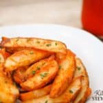 I created these homemade buffalo potato wedges when my husband was on a restrictive diet – no grains, legumes, dairy or sweeteners – but still wanted to have a little “fun food” for a Super Bowl party.