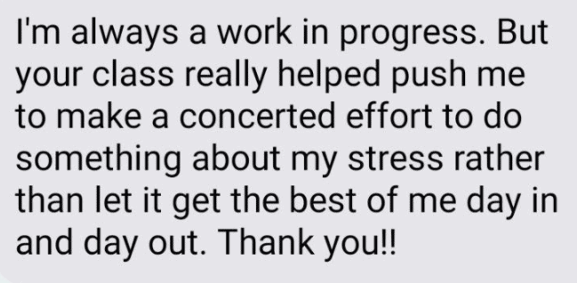 • She pursued the Certified Stress Mastery Educator certification because her heart of a teacher wanted to give to other busy mamas even as she learned for herself…plus, having accountability would help her actually implement anything she learned.