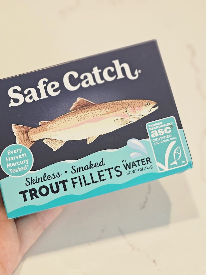 But how does it taste? I got to try some Safe Catch tuna and smoked trout, and I admit I was a little nervous about smoked trout! Then my husband reminded me I love smoked gouda, so I should give it a try. Light flavor and texture, not too fishy, and very lightly smoked flavor. I very much enjoy it! The tuna, admittedly, tastes like tuna fish. Safe Catch sells the standard style tuna with the texture you’d expect from a store brand can. I admit that although according to the website, I ought to be able to taste the difference, I really can’t.